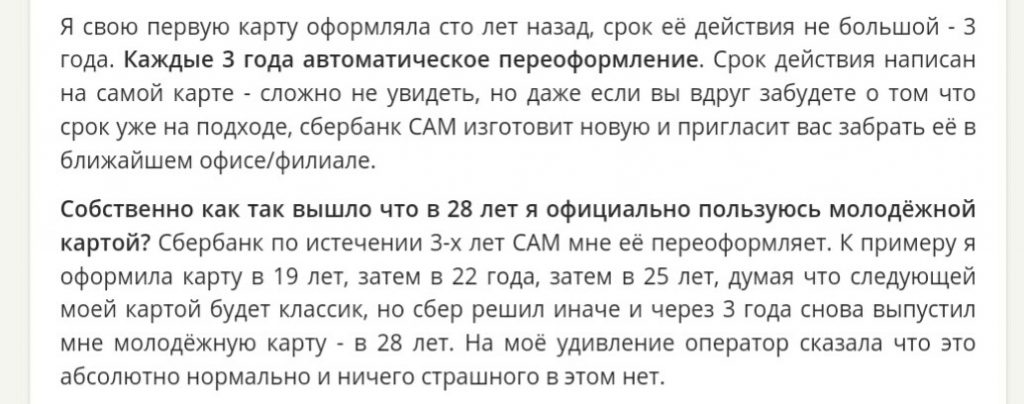 Дарья, г.Екатеринбург: «Оформила молодежную карточку МИР в Сбербанке 3 года назад, когда училась в университете, но использую ее и сейчас, т. к. срок действия еще не окончился. Единственное, что мне не нравится, — это отсутствие процентов на остаток. В остальном карточкой довольна. Особенно радуют кешбэк и дополнительные привилегии, которые можно получить при выполнении определенных условий».