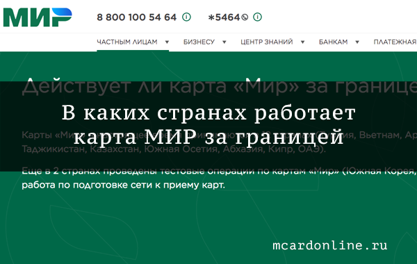 Российские платежные инструменты обслуживаются в 12 странах мира. Рекомендуется ознакомиться с возможностями использования данного продукта в каждом государстве.